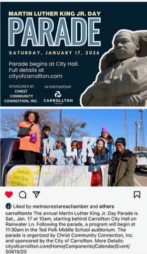 This past Saturday, members of the Carrollton–Farmers Branch Rotary Club were proud to join the City of Carrollton and the community in celebrating the annual Dr. Martin Luther King Jr. Parade.